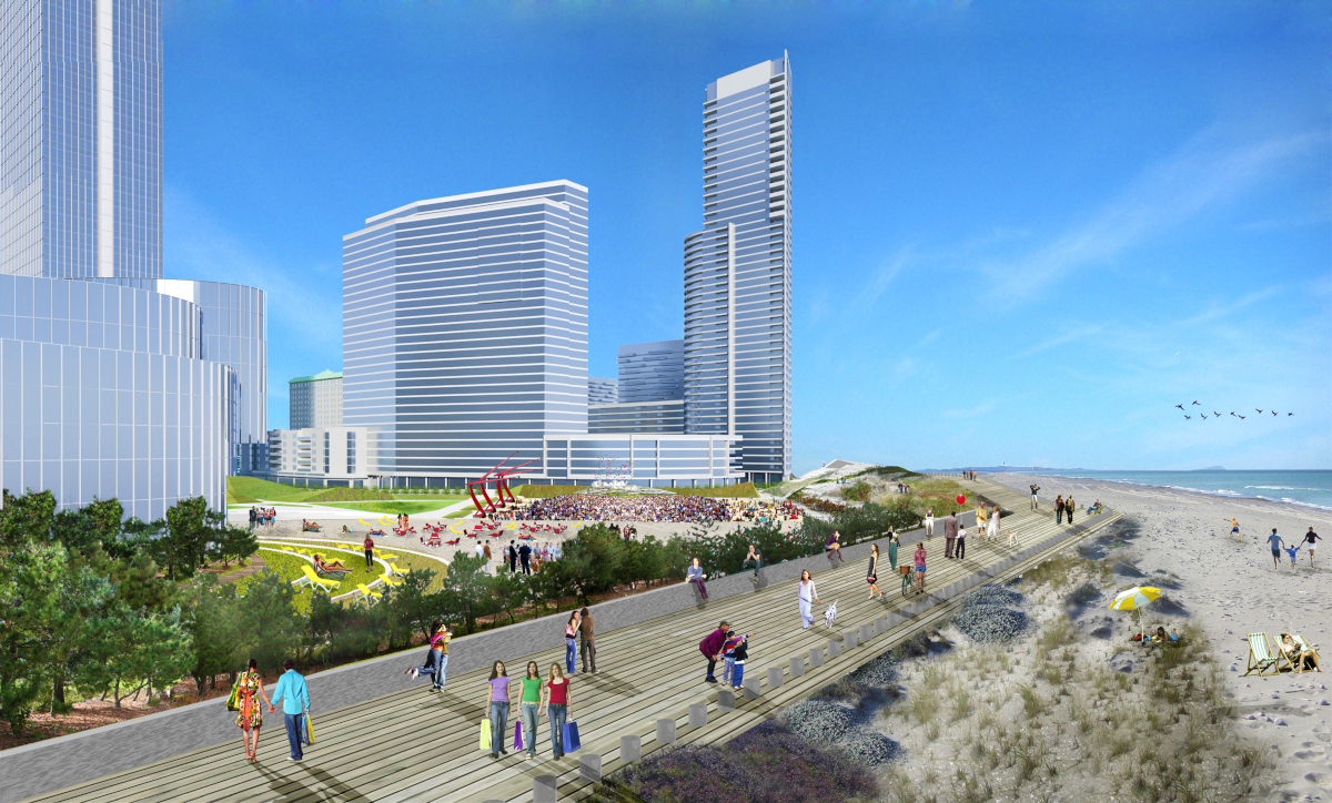 A master plan for the Absecon Inlet section of Atlantic City, NJ, was produced in collaboration with the New York office of EDAW, (now a part of AECOM). New multifamily housing, commercial development, mixed-use and public infrastructure were carefully distributed in four parts over 292 acres. Included in the 292 acres are high-end market-rate housing and mid-market residential both in condominium and rental forms, rental workforce housing, and additional resort development adjacent to the Revel Resort & Casino, the first phase of which was then nearing completion.