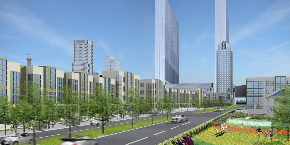 New luxury condominium towers were planned for prime waterfront blocks, directly adjoining the State of New Jersey’s special resort district. Workforce housing lined Connecticut Avenue on the approach to Revel. The block containing the now inland Absecon light house becomes the town square of the revived urban district. The pace of development was crafted to suit market absorption, with sustainable design principles guiding the entire development.